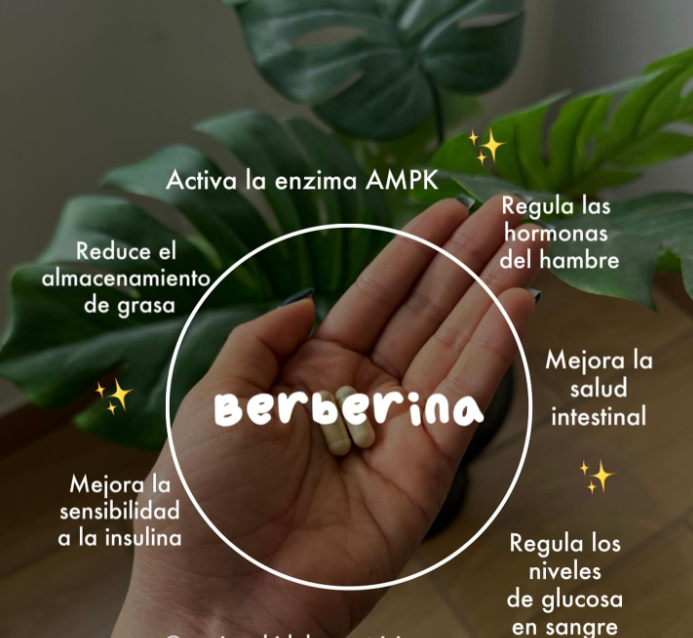La Berberina HCL activa la enzima AMPK, regulando el metabolismo de glucosa y lípidos.