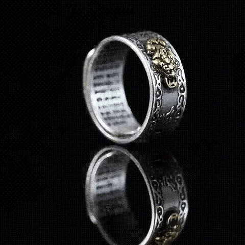 Este anillo no es solo una joya: es un símbolo de protección, prosperidad y equilibrio espiritual. Con grabados en sánscrito y una figura dorada de un León Guardián (Pixiu), representa una fusión perfecta entre arte, cultura y misticismo oriental.